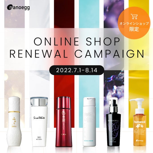 株式会社ナノエッグ(本社:東京都港区、代表取締役 山口葉子)は、2022年6月22日(水)に公式オンラインショップを全面リニューアルいたしました。リニューアルを記念し、7月1日(金)よりオンラインショップ限定のキャンペーンを実施いたします。