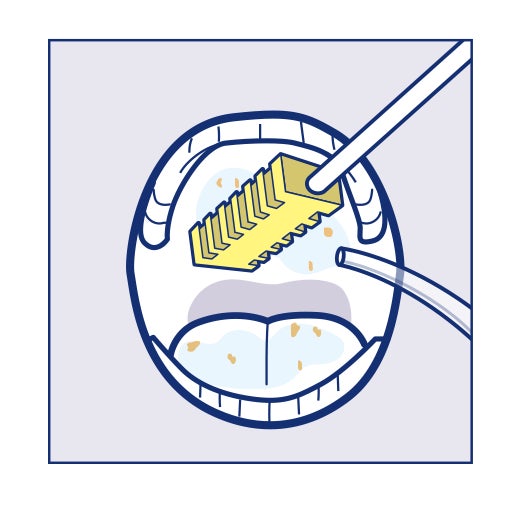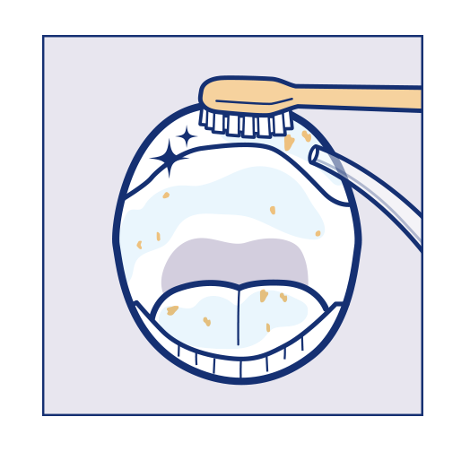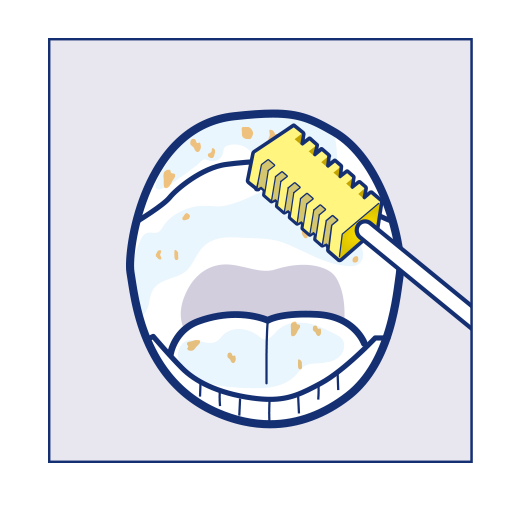 ④スポンジブラシで上あご、舌、頬の内側など粘膜の汚れをとりのぞけば完了です。