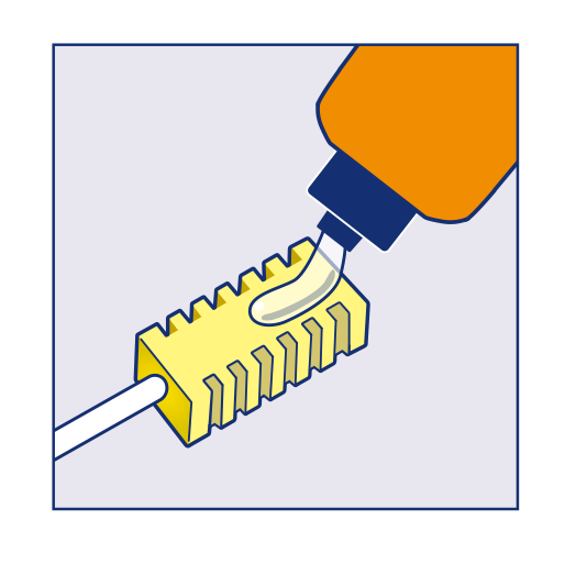 ①デンタルートF をスポンジブラシや指に取ります。