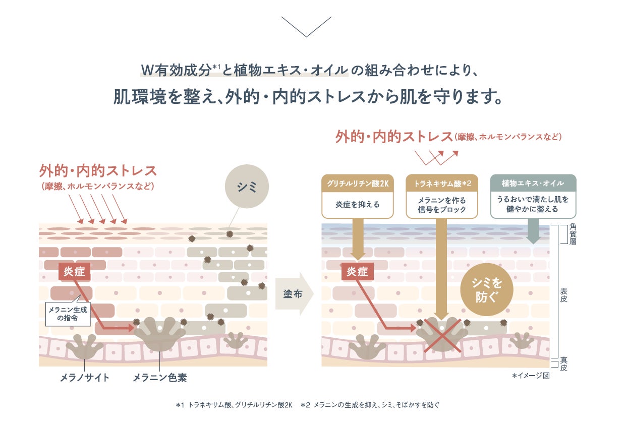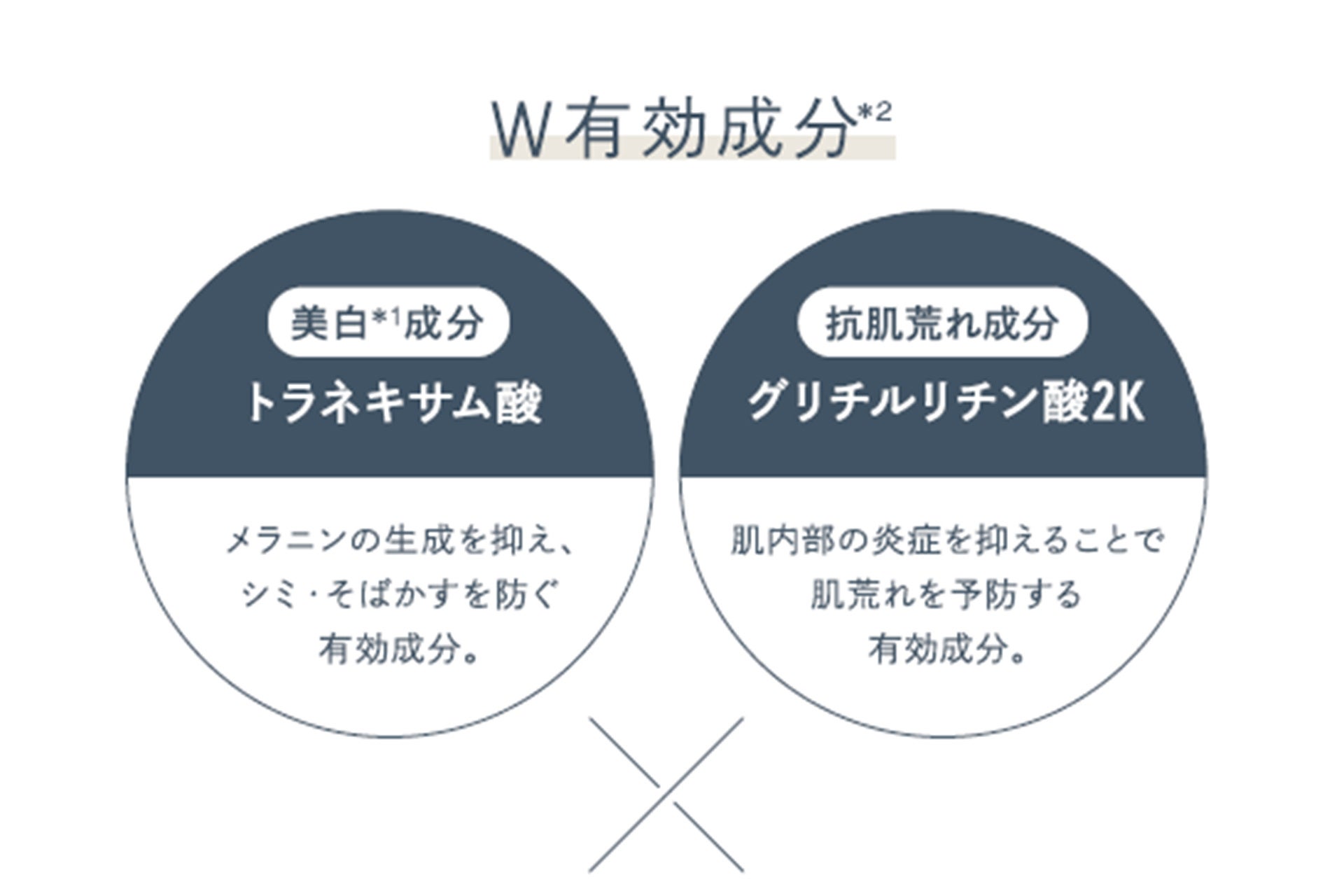 美白*¹×肌荒れケアを叶える「W有効成分*²×植物エキス」