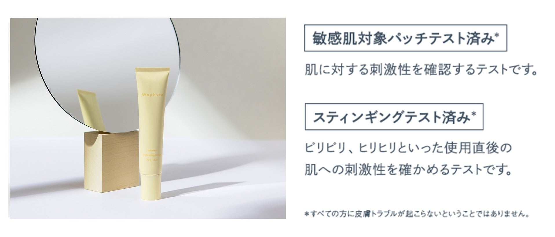 パッチテスト・スティンギングテスト済みで、敏感な肌にもお使いいただける低刺激処方* 。