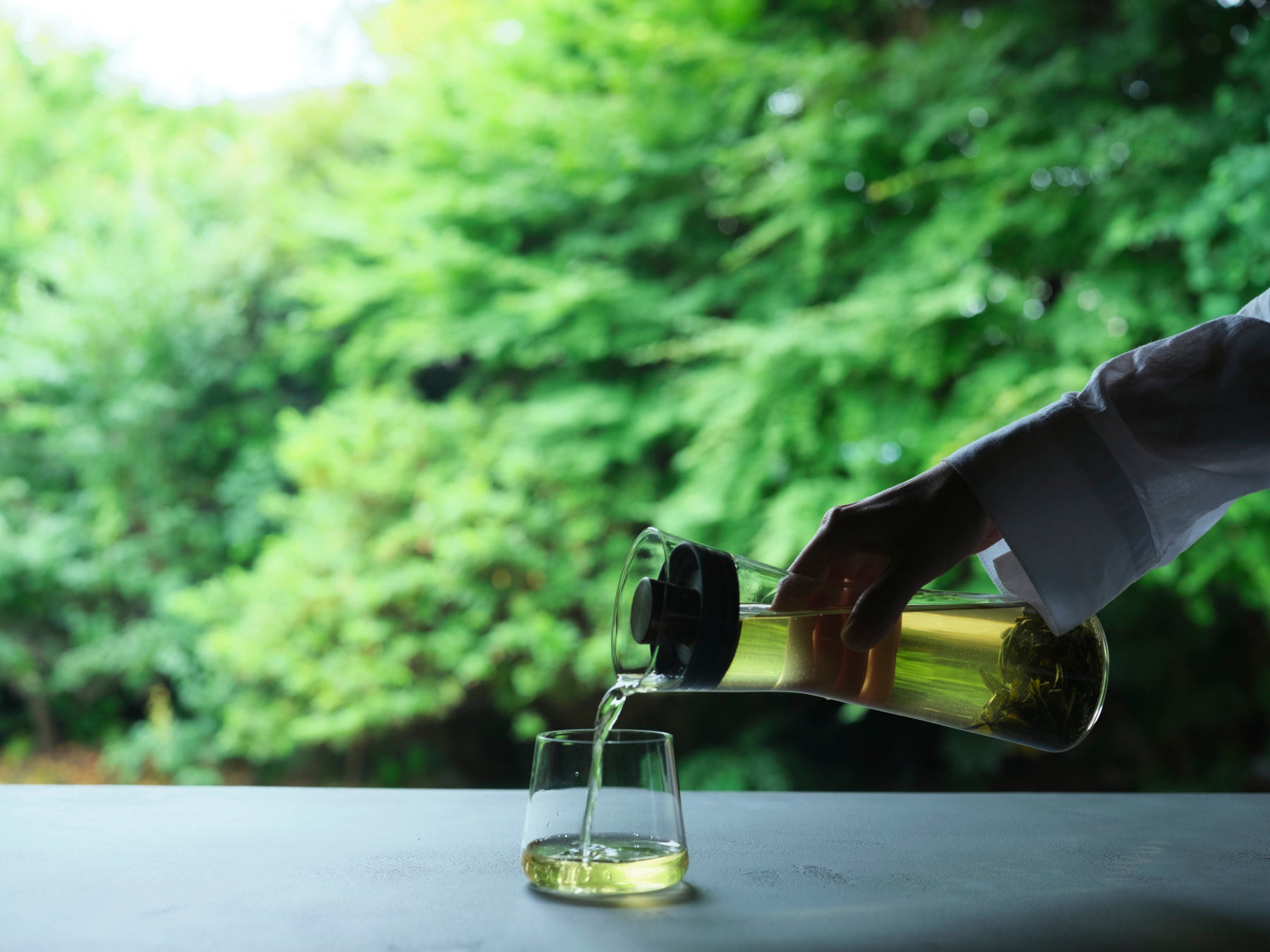食卓に溶け込み、お茶の美味しさを最大化する水出し茶専用のカラフェ・グラスセットです。ソムリエ監修でお茶の美味しさを科学的・心理的に考察し、形状や素材を日本の職人の技によって製品に落とし込みました。淹れる、注ぐ、飲むという全ての瞬間における機能性と美しさを追求しました。