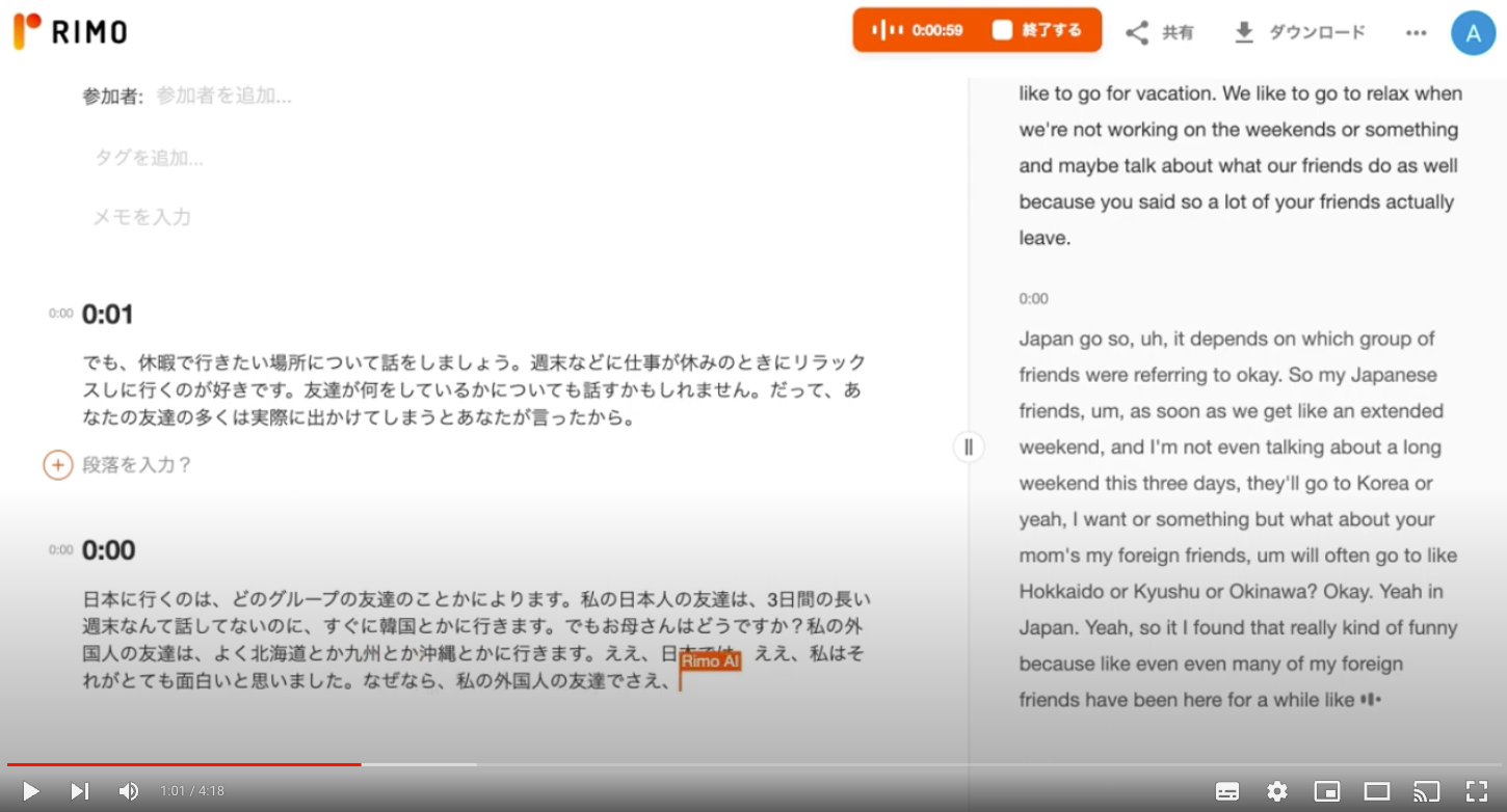 ▲ 『Rimo Voice』リアルタイム翻訳機能 デモ動画