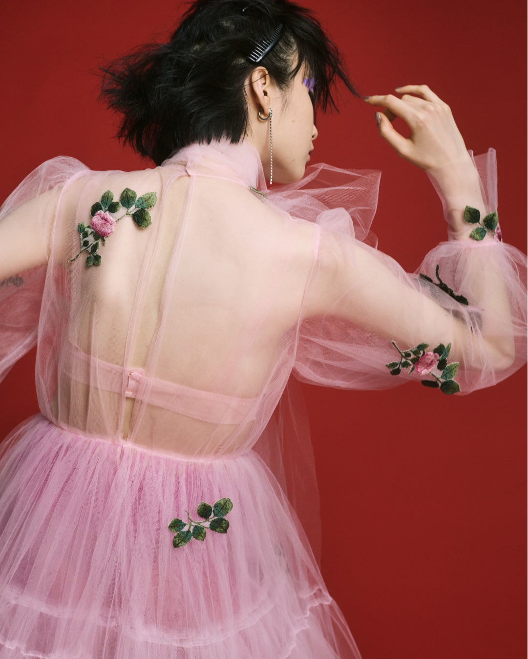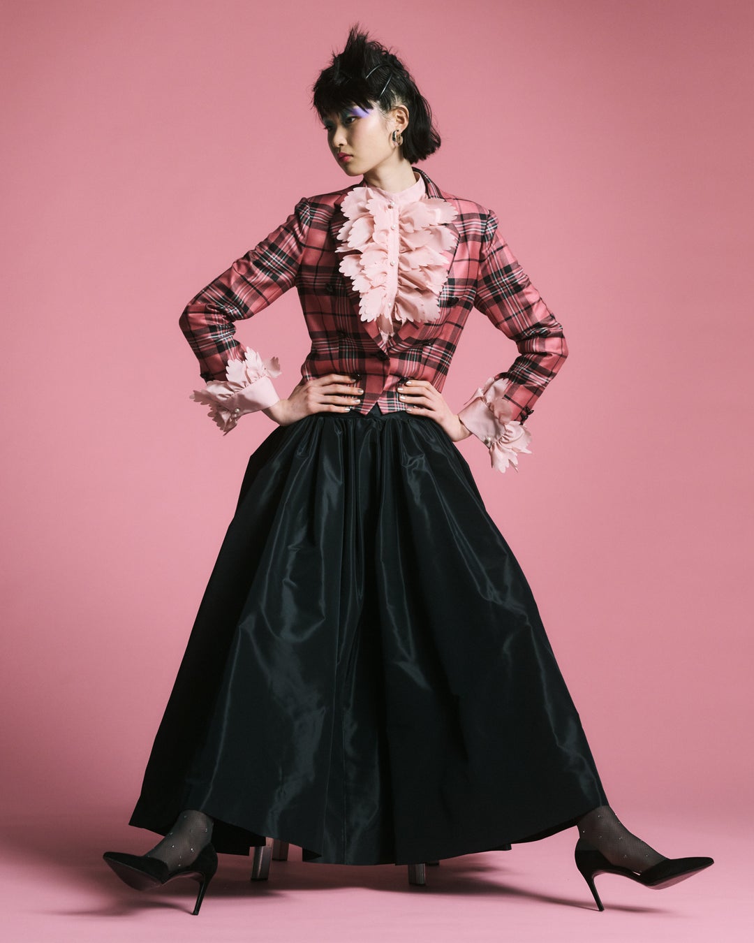 エレガントなだけでなく、ミステリアスさ、英国趣味、スクールガールのエッセンス、重なりあったボリューム、ピンクからローズのグラデーション、イマジネーションを楽しむコレクションに仕上がりました。