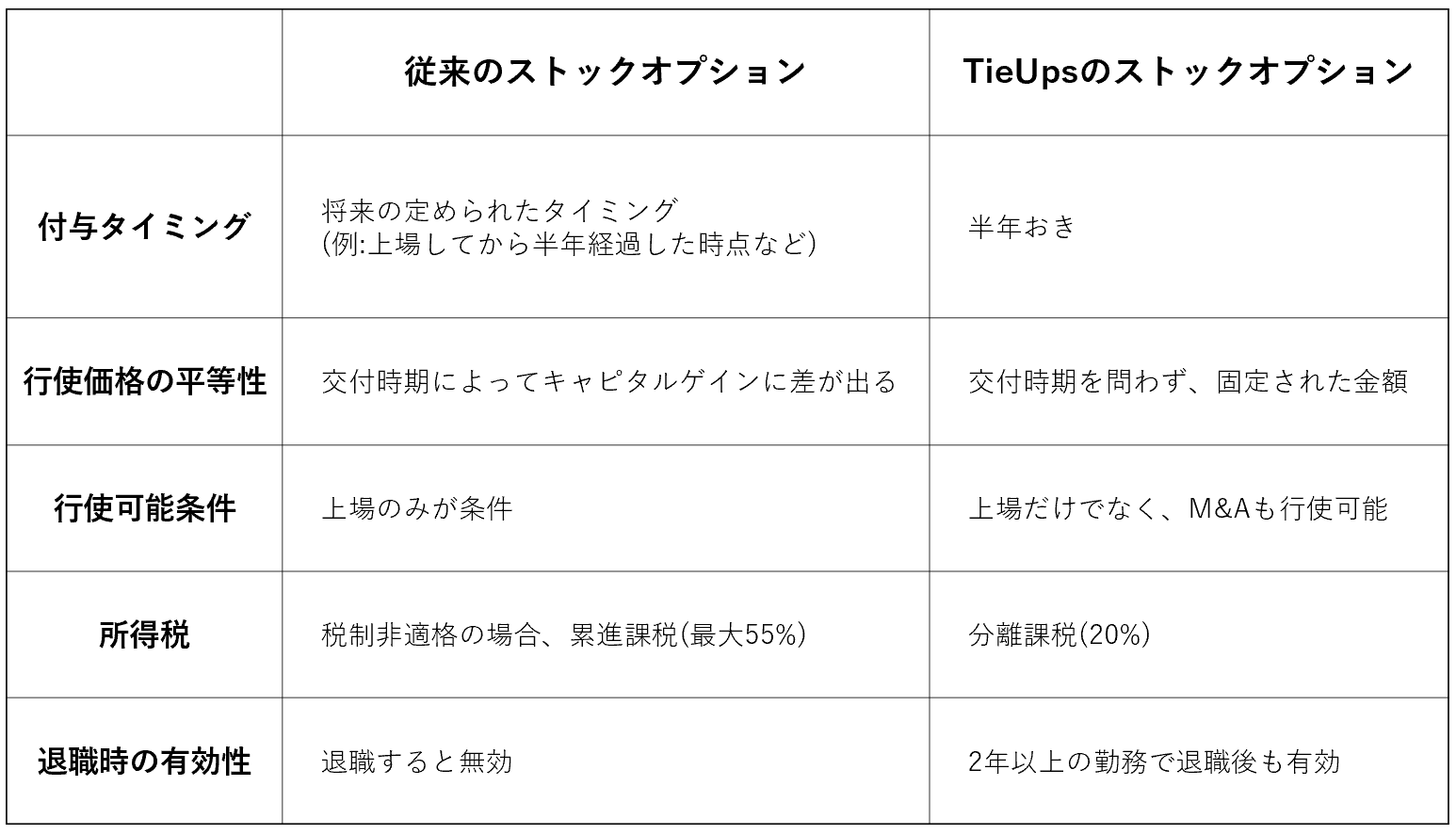 従来のストックオプション制度は上場しない限り行使できませんが、弊社は上場以外にもM&Aでも行使が可能になるよう設計しており、上場のみを条件にするよりも行使できる可能性が高くなります。
