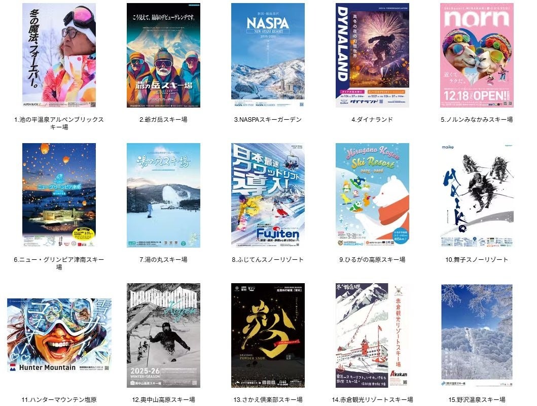 25-26シーズンのスキー場ポスターが勢ぞろい!「Japan Ski Resort Poster Award 2025-2026 」抽選でリフト券/宿泊券をプレゼント!