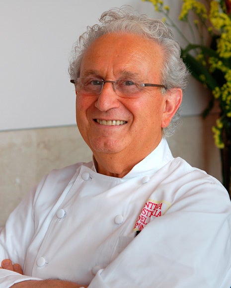 ロンバルディア州ミラノ生まれ。ミラノで育った彼は、市内にコーヒーやワインを扱うガストロノミア(食料品店)を営み、各地の名店を食べ歩いては友人たちに料理を振る舞い、その腕前が評判となっていました。1976年、ミラノ郊外の橋のたもとに立つ古い旅籠を買い取り、改修し、念願の店を開きました。その時すでに39歳。料理人としては異例の遅い出発でしたが、独学の天才はそれから花開きます。