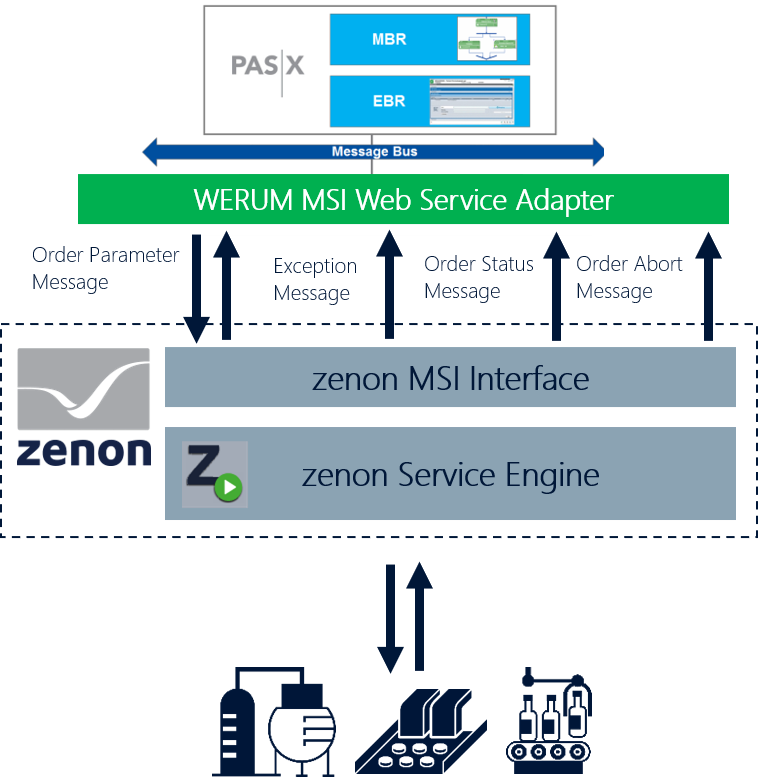 欧州を中心に広く浸透しているMES(Manufacturing Execution System、製造実行システム)であるWerum社PAS-Xとの直接接続可能なインターフェースが実装されました。このインターフェースにより、zenonが簡単にPAS-Xと接続することができ、開発工数やバリデーション工数の低減が可能になります。zenon11では、下記のMSIメッセージに対応しています。