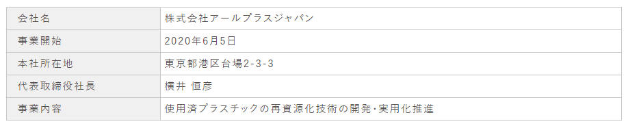 これらの取り組みを進めるなかで、資源の有効活用として使用済みプラスチックの再資源化が欠かせないことから、このたび、使用済みプラスチックの再資源化事業を展開する株式会社アールプラスジャパンの趣旨に賛同し、資本参加することを決定しました。今後当社は、同社のケミカルリサイクルによる資源循環を通じて、環境負荷低減と持続可能な社会の実現に貢献します。