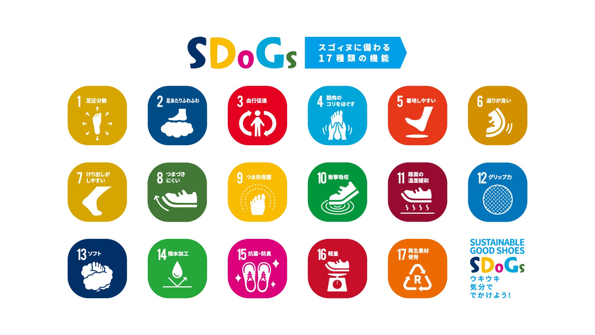 POINT3 : 足圧分散や衝撃吸収など、快適な履き心地を実現する17の機能を搭載