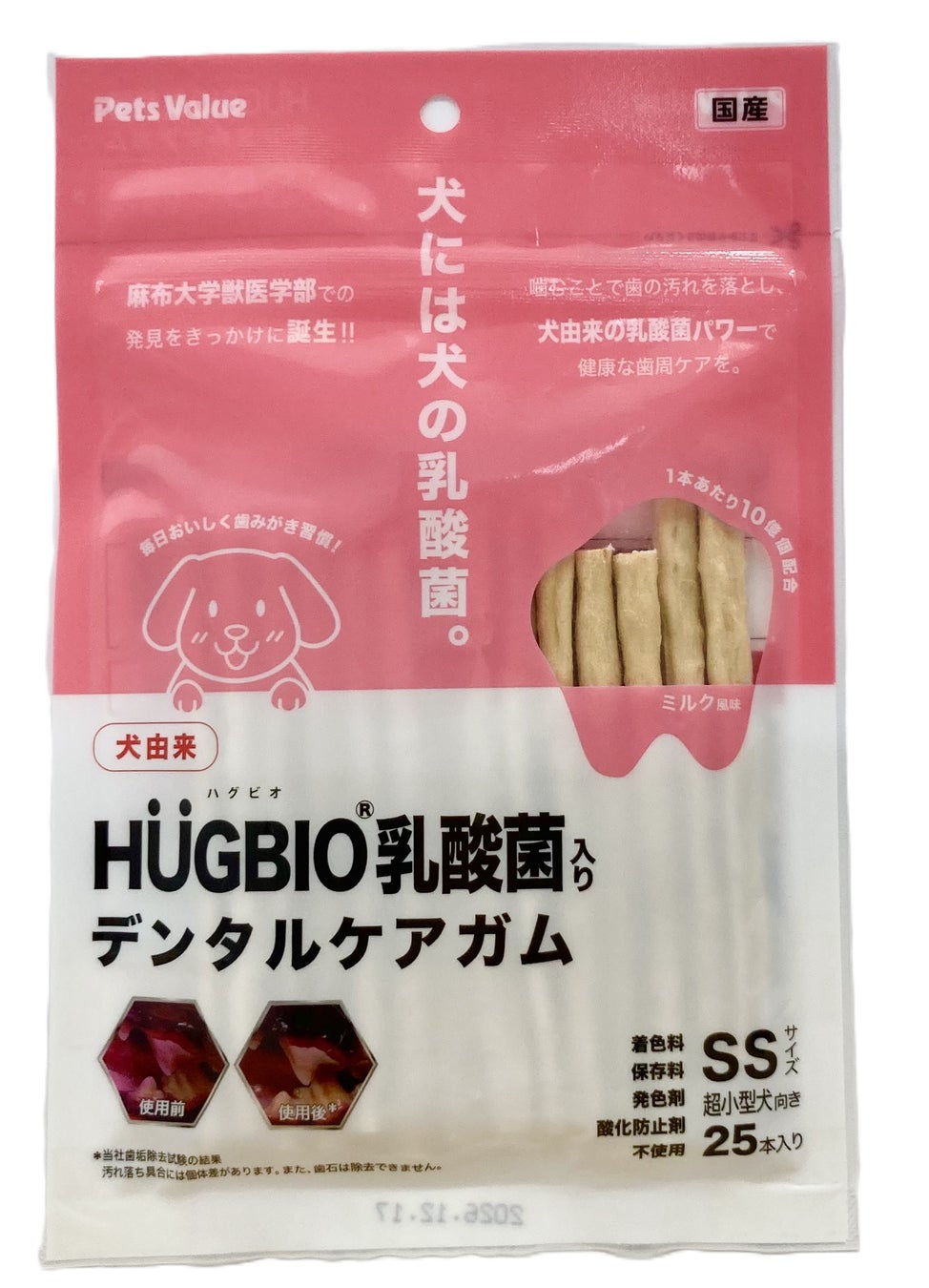 エコートレーディング株式会社(本社:大阪府大阪市、代表取締役社長:豊田実)のグループ会社であるペッツバリュー株式会社(本社:兵庫県西宮市、代表取締役社長:濵田謙二、以下ペッツバリュー)は、2026年3月より、麻布大学獣医学部での発見をきっかけに誕生した、業界初※1となる犬由来の特許乳酸菌採用した『HÜGBIO®(ハグビオ)乳酸菌入りデンタルケアガム』を発売いたします。