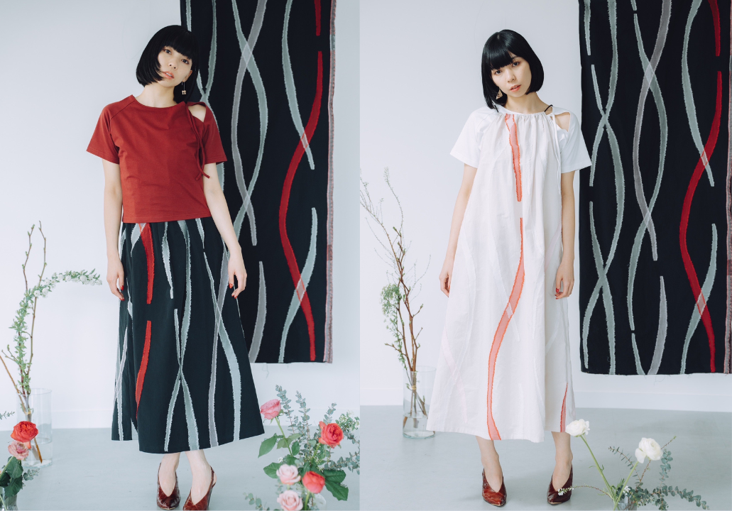 みました。そのテキスタイルをAyらしいデザインで⾐服に仕⽴て、⽴体感豊かなジャガード織りでワン