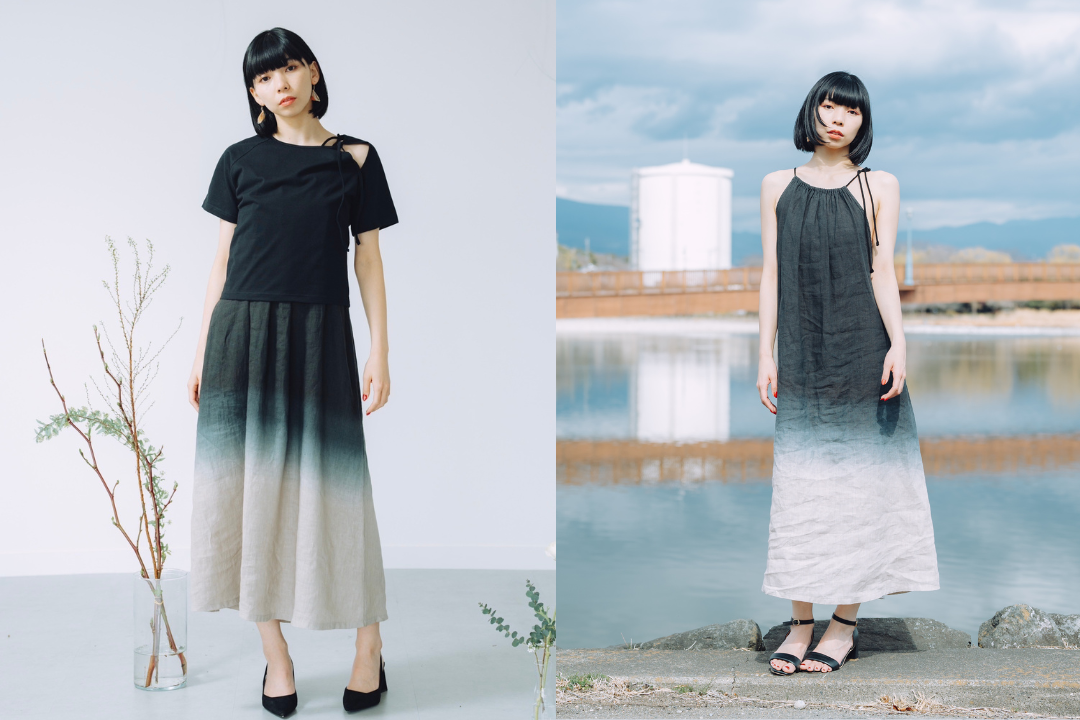 群馬県桐生市にある染め工場KIRISENによる「暈し染(ぼかし)」染め技術を用いて、上質な風合いを演出。