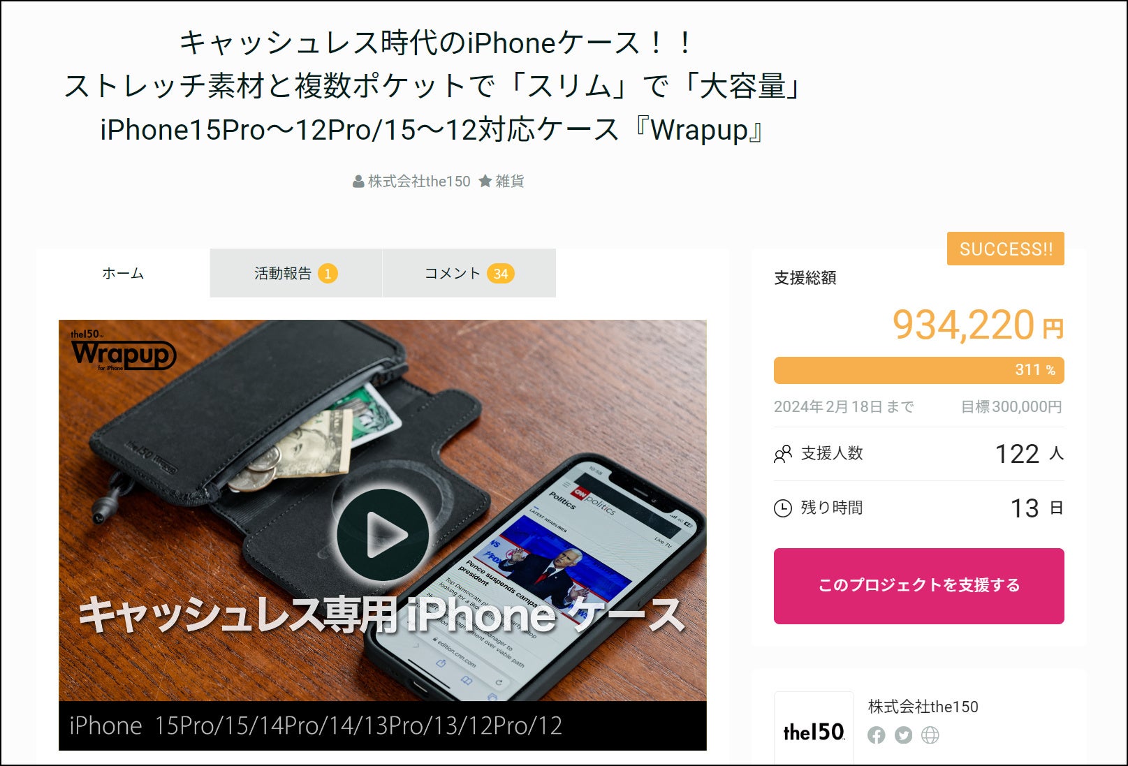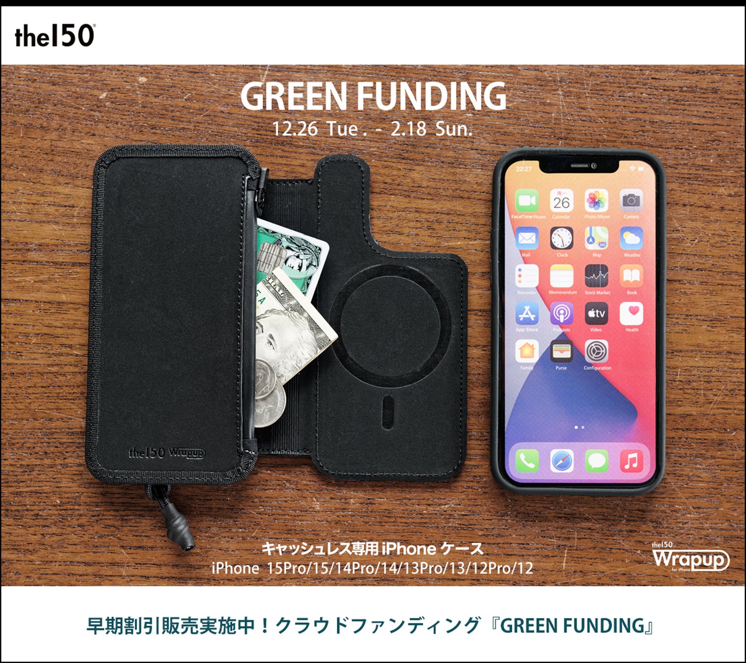 【クラウドファンディング300%達成!】”スリムかつ大容量”な財布一体型iPhoneケース「Wrapup」第3弾、GREEN FUNDING先行販売は2月18日(日)23:59まで。