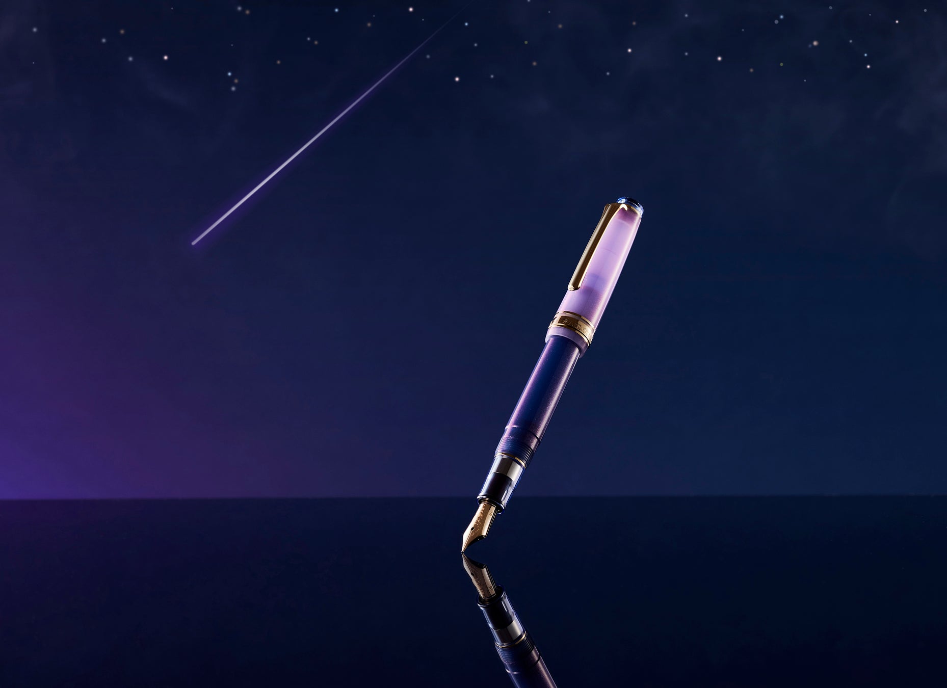 滑らかな書き味をもたらす14金のペン先には、月と星屑をモチーフにした装飾を施し、蓋栓には夜空に浮かぶ月をあしらいました。