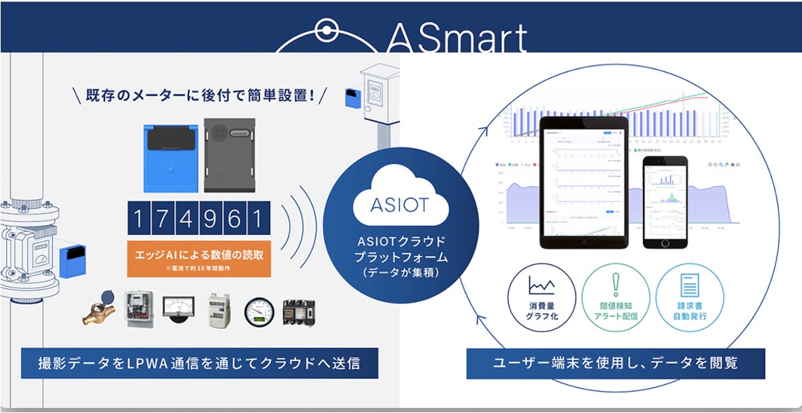 「A Smart」とはASIOTが展開する様々な種類のアナログメーターにアタッチメント(後付け)方式でIoT化するエッジAI型の自動検針サービスです。