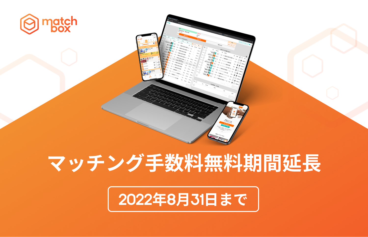 株式会社Matchbox Technologies(マッチボックステクノロジーズ 本社:新潟県新潟市中央区、代表取締役社長:佐藤 洋彰)は人材のデータベース化とスポット人材の求人~採用・労務管理をワンストップで行うアプリケーション「matchbox(マッチボックス)」を提供しております。今回、2021年8月1日~2021年12月31日の期間限定としていた「matchbox」の人材マッチング手数料を無料にするキャンペーンを2022年8月31日まで延長することを決定いたしました。