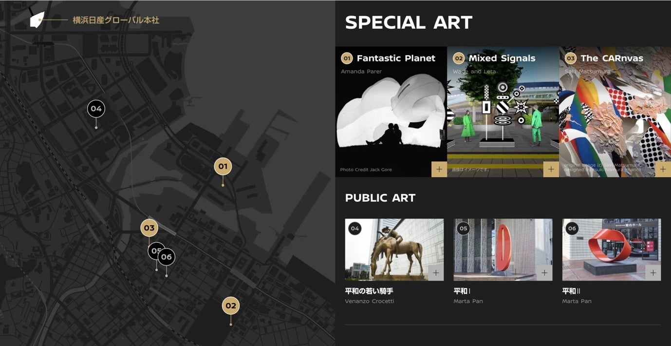 エクストレイルとアーティストによるコラボ作品に加えて、横浜市に設置されているパブリックアートをまとめた「THE DRIVE-THRU MUSEUM MAP」も公開。