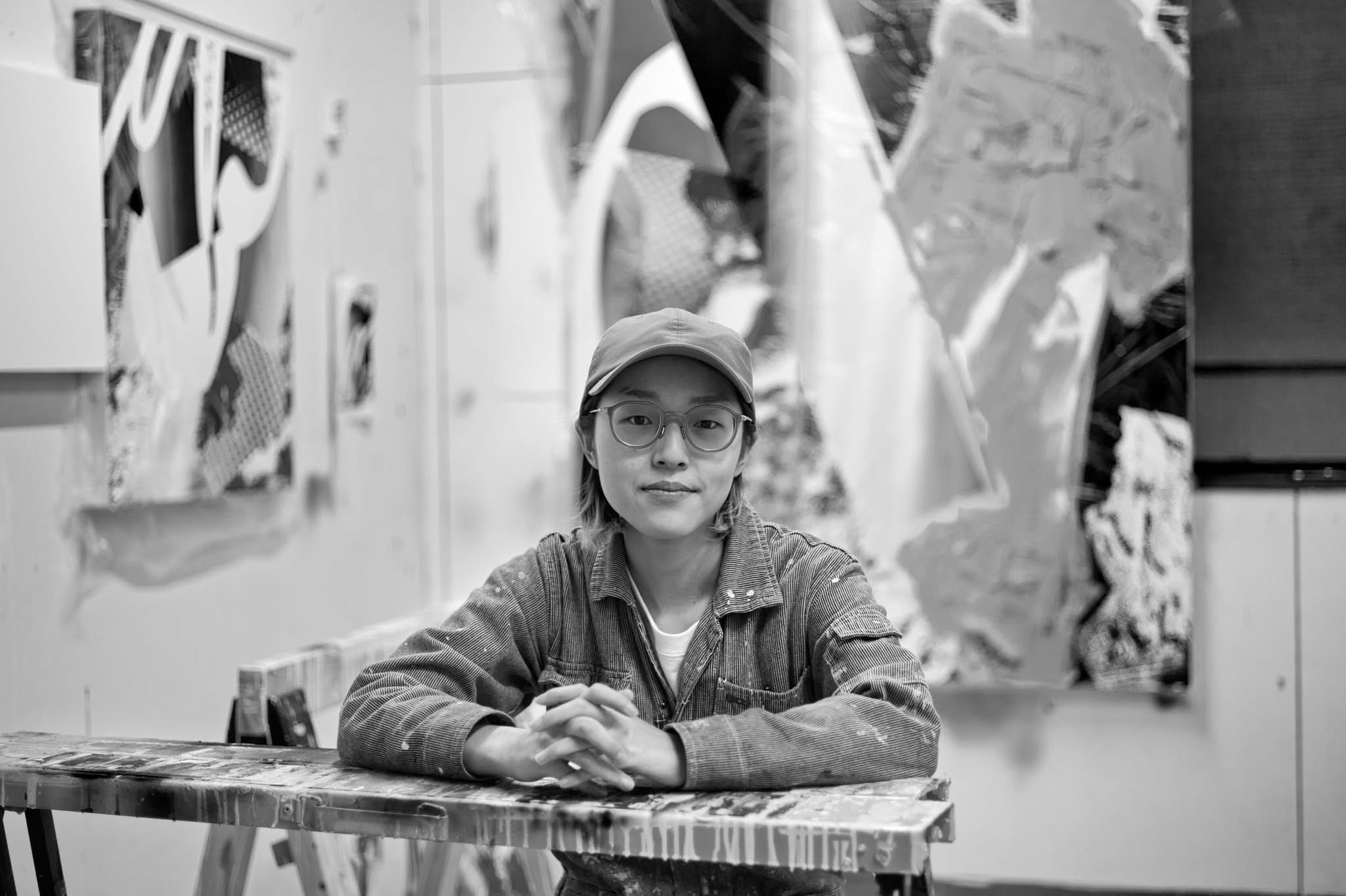 京都を拠点に活躍するアーティスト。アクリルペイント、シルクスクリーンなど、複雑なレイヤーと立体感を持つ絵画で、抽象概念を視覚化する作品が特徴。
