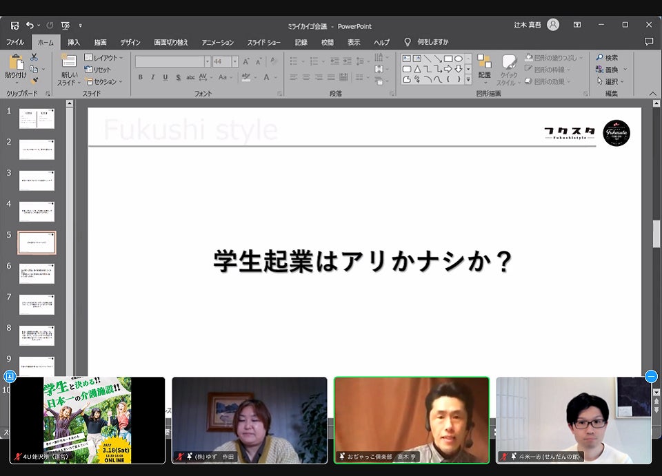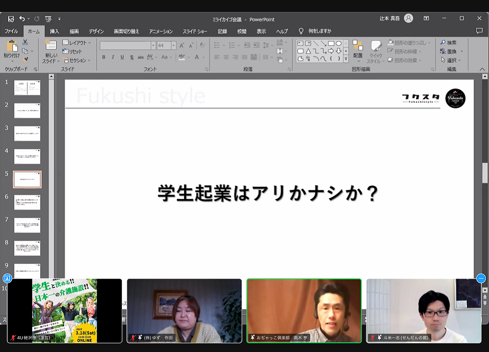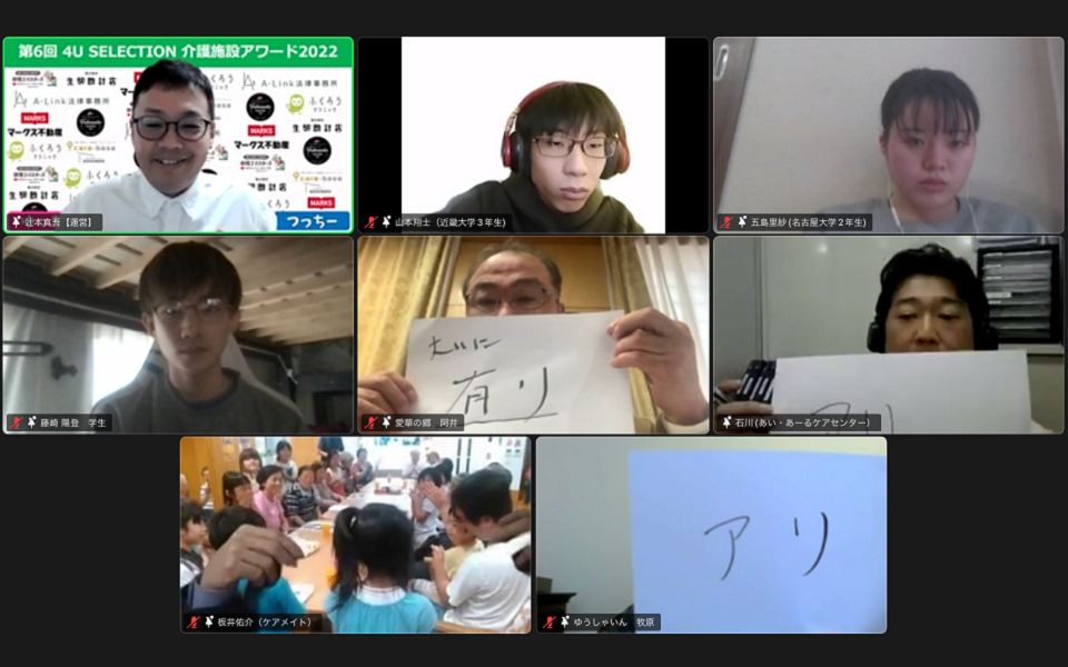 今回は「介護×学生」をテーマのもと、学生と施設担当者によるパネルディスカッションや年間大賞を受賞した施設によるライブでのオンライン見学を目玉企画としていました。