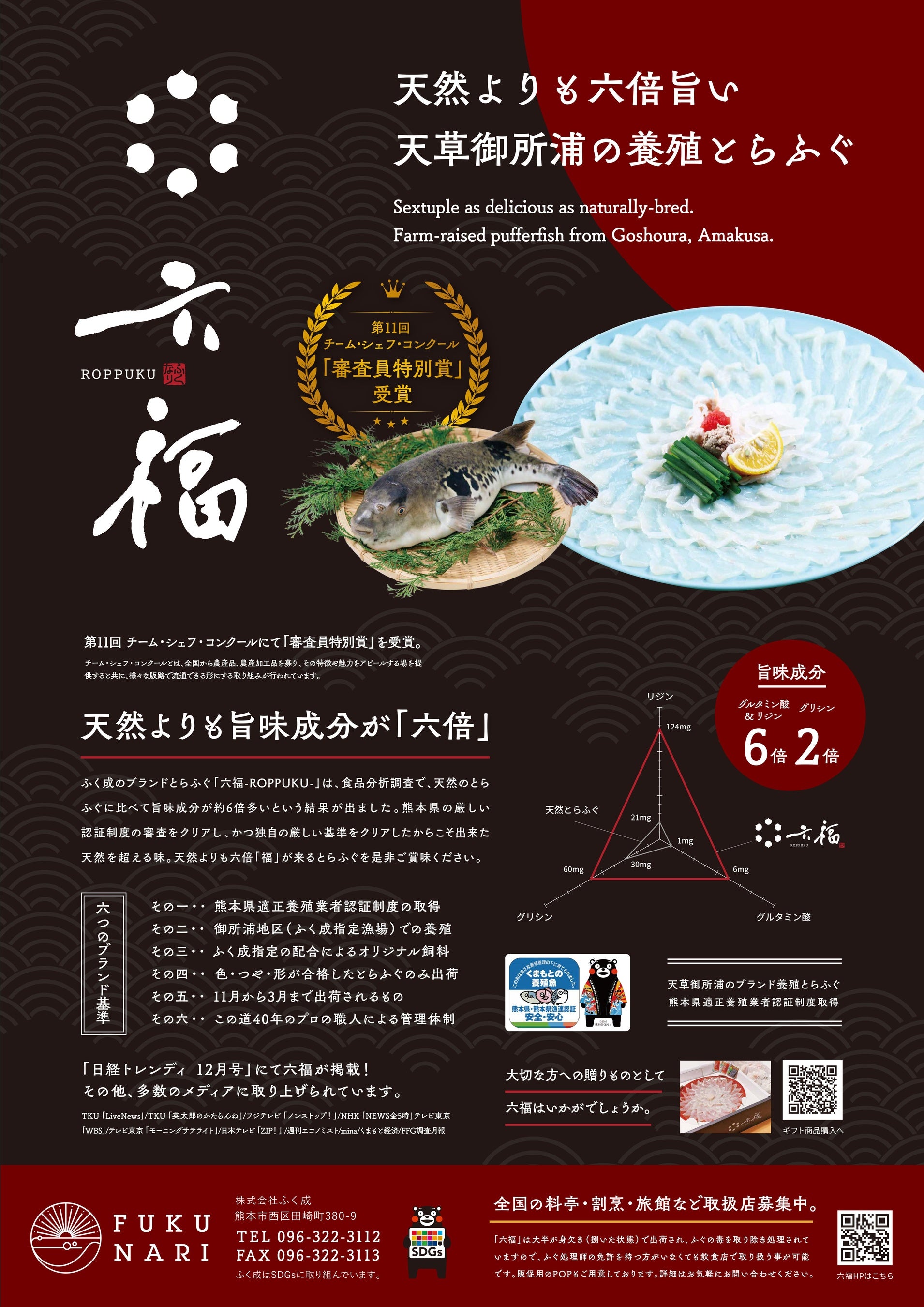 赤潮被害からの復活!天然よりも6倍の旨味成分を持つ、ブランドとらふぐ「六福®-ROPPUKU-」が11月1日より今季の販売を開始!