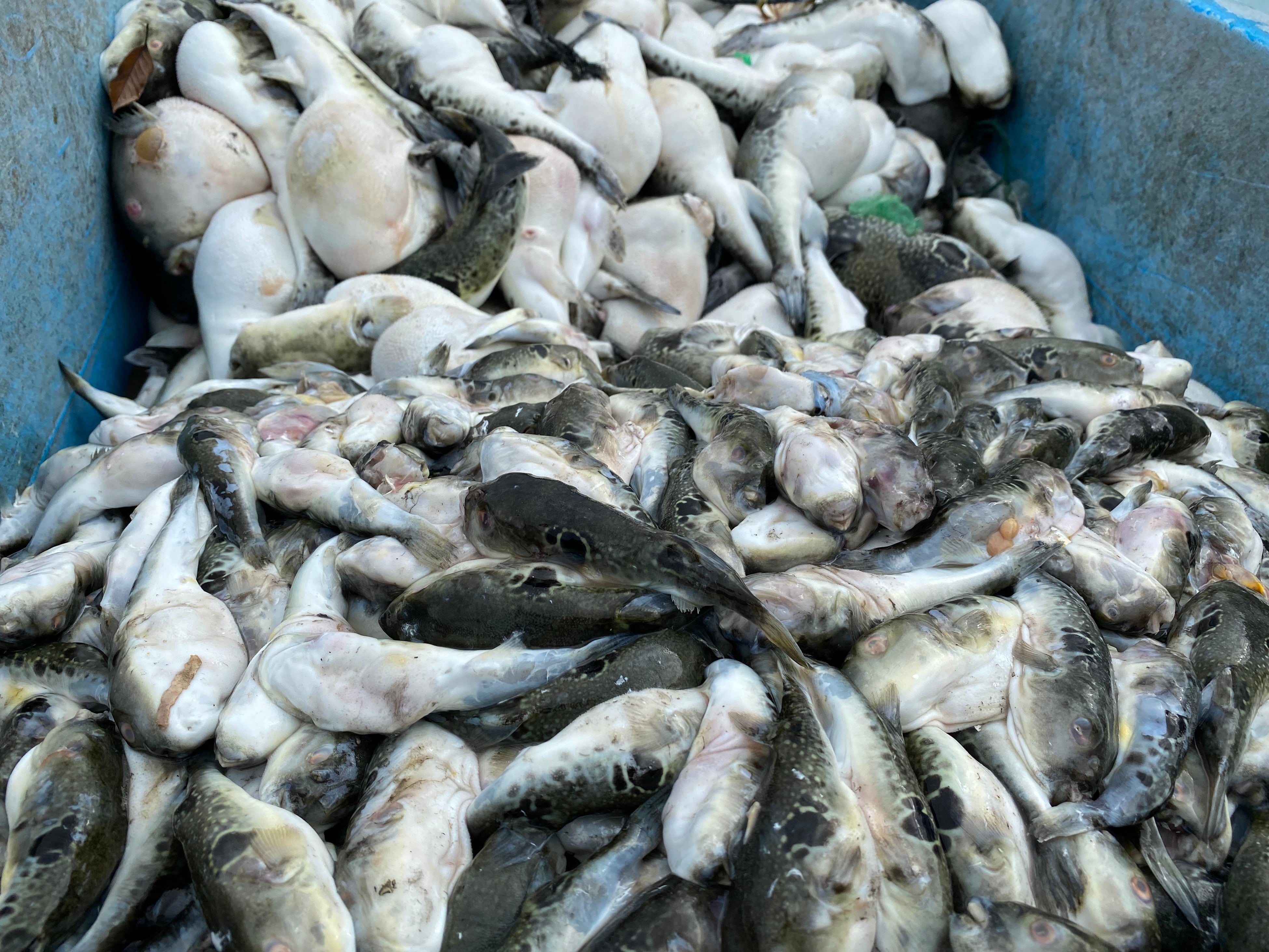 2022年8月末には「赤潮警報」は解除されましたが、今までにない長期間の餌止めを行っていいたため生き残った養殖とらふぐもやせ細りました。