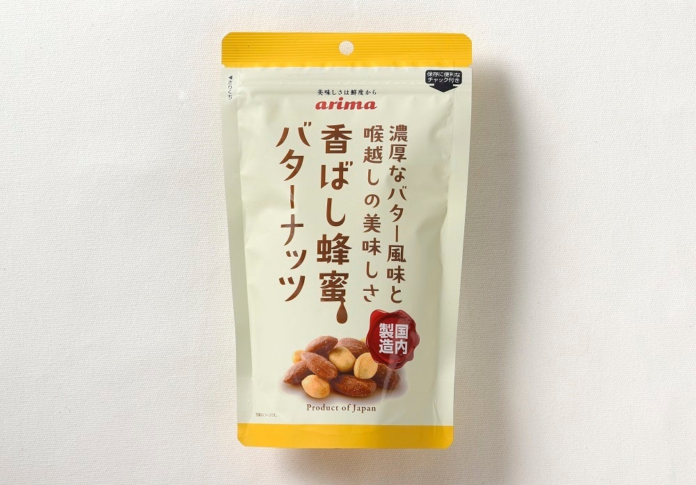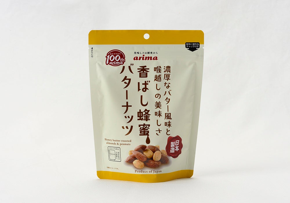 「油で揚げないハイクオリティナッツ」に続いて売上2位を誇る人気商品です。添加物を極力減らし、おいしさと安心感を提供したいと考え、2020年の5月に誕生しました。厳選したアーモンドとピーナッツを使用しており、北海道産バターで風味付け、アクセントに塩をきかせた、甘じょっぱい味わいとバターの濃厚なコクと香りが印象的な商品です。