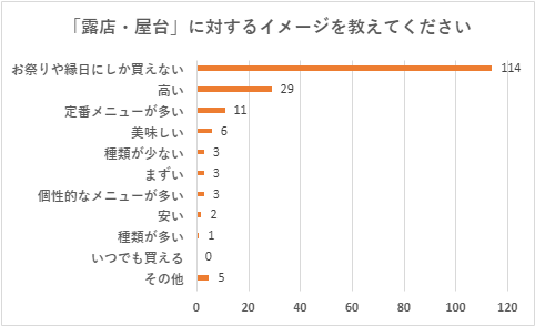 露店・屋台のイメージとして正直「高い」というイメージをもっている方も多数いました。