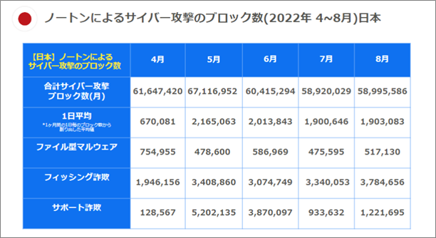 消費者向けセキュリティブランド「ノートン™」は、2022年8月に日本でブロックしたサイバー攻撃数を公表いたします。