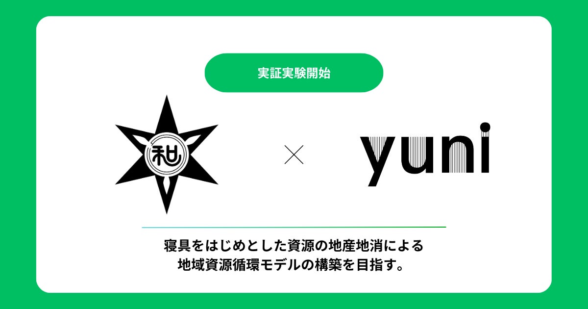 株式会社yuni(代表取締役CEO 内橋 堅志)は、和歌山県和歌山市(和歌山市長 尾花 正啓)と寝具等の再生素材化の実証実験を開始致しました。