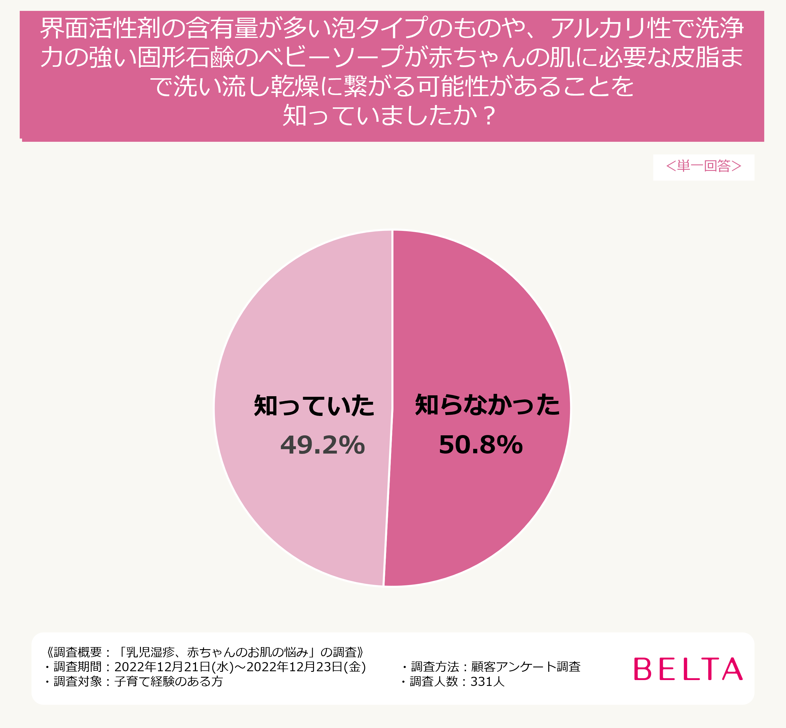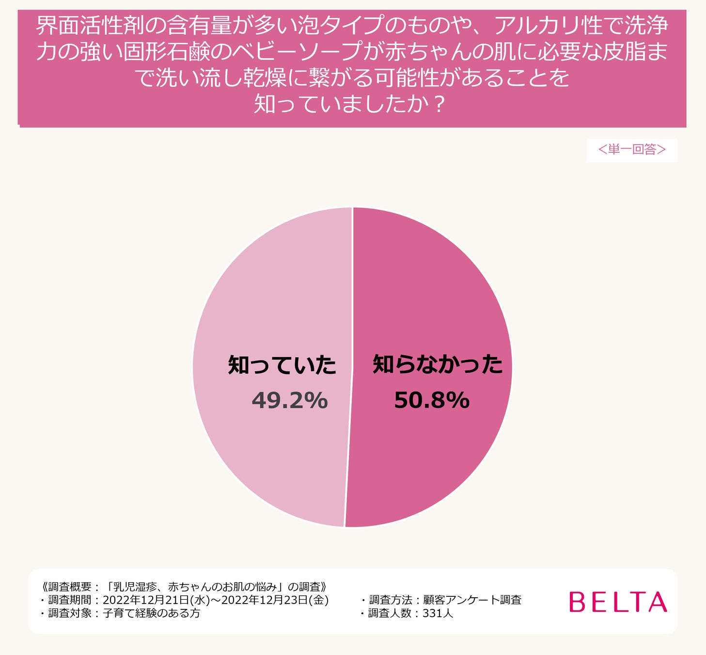 - ベビーソープが赤ちゃんの肌の乾燥につながっていることを知らない人が半数以上も