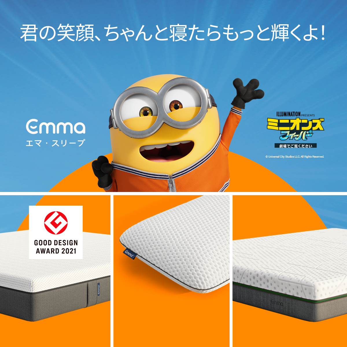 2022年7月8日(金)東京発 - エマ・スリープは、イルミネーション社およびユニバーサル・ピクチャーズ社と提携し、イルミネーション社の新作映画「ミニオンズ フィーバー』とのプロモーションキャンペーンを実施します。イルミネーション社の新作映画「ミニオンズ フィーバー」<7月15日(金)公開>のプロモーションキャンペーンは、仮に世界的な悪党のミニオンたちであっても、誰もが良質な睡眠をとることに値するというメッセージが込められています。