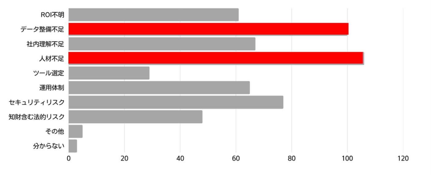 AI活用の最大ボトルネックは「データ整備不足」・「AI人材不足」に