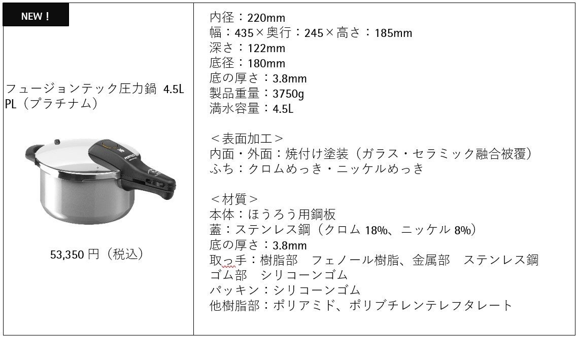 新発売 フュージョンテック圧力鍋4.5L PL(プラチナム)