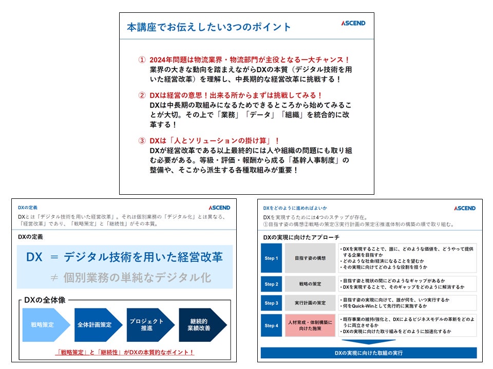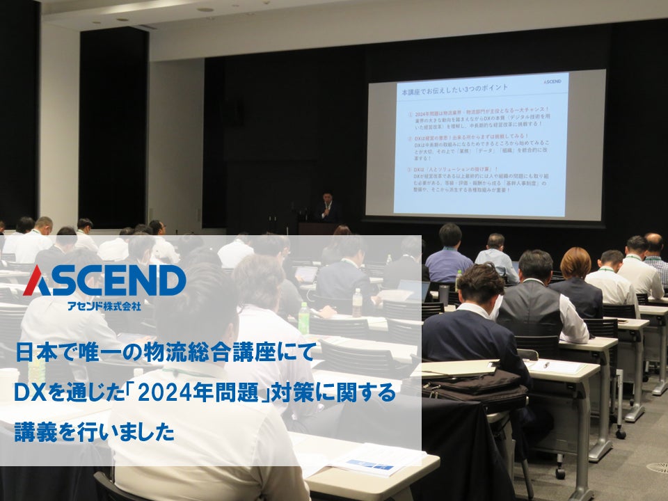 物流と経営を総合的に学ぶ日本で唯一の総合物流講座にアセンドが講師として登壇。「2024年問題」対策としてDXの基本や実践に関する講義を実施
