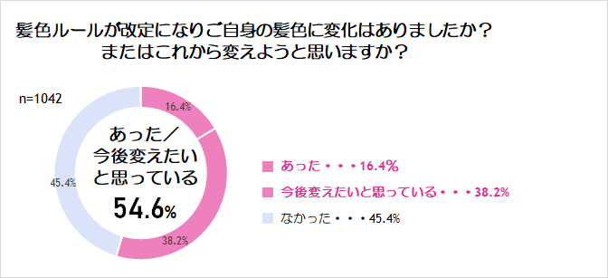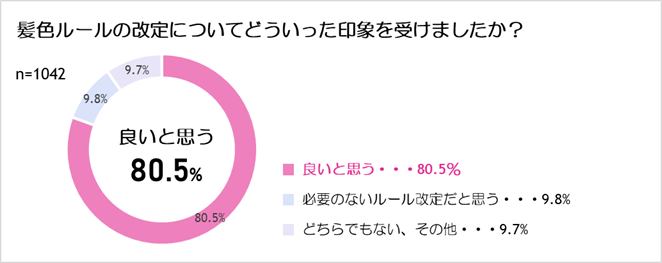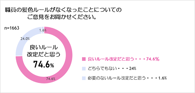 80%以上の職員が髪色の自由化に賛成、2人に1人以上が規定撤廃を機に髪色を変えようという結果に。