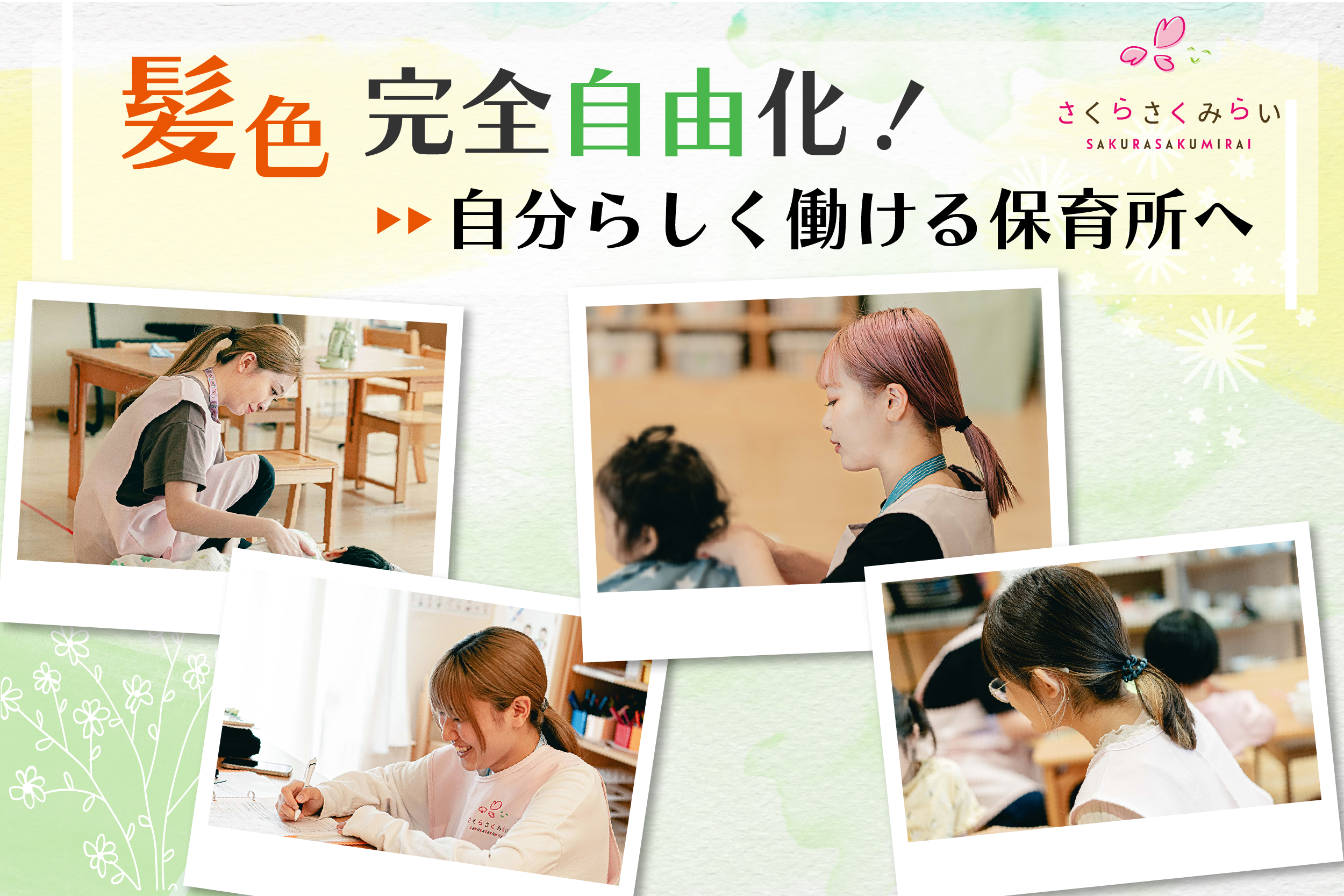 当社保育所「さくらさくみらい」では、画一的ではなく、違いのある「その子らしさ」を尊重し、個性を大切にする保育を行っています。時に子どもたちの模範となり、憧れの存在ともなる保育者自身が、個性を大切に自分らしさを表現することは子どもたちにとっても良い影響を与えるものだと考え、この度規定の撤廃に至りました。