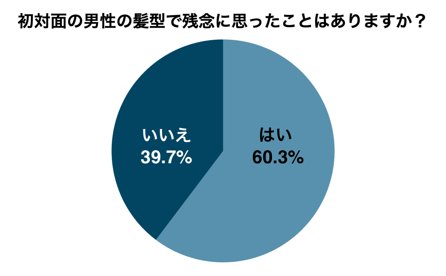 「初対面の男性の髪型で残念に思ったことがありますか?」と質問したところ、「はい」と回答した方は6割以上と、5人に3人が残念に思った経験があるということがわかりました。