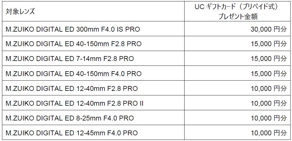 M.ZUIKO DIGITALレンズ対象製品と景品