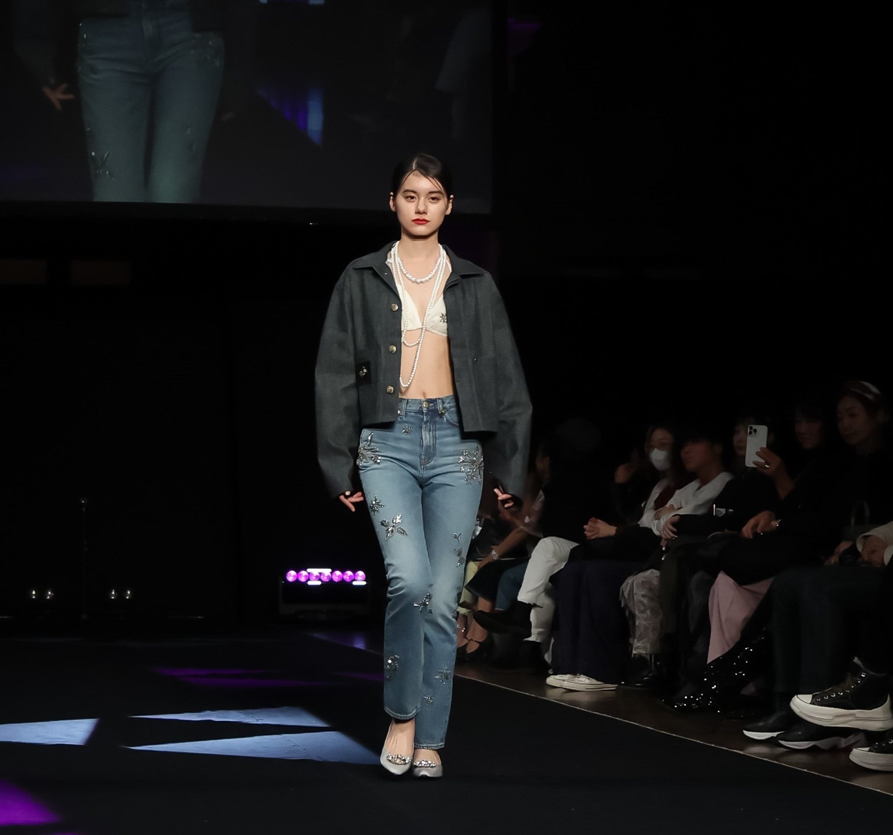 「レディースデニムパンツ」と「レディースデニムジャケット」の2アイテムを募集し、約500点の応募の中から選ばれた15点の作品が、世界的デニムの産地である児島のデニム生地を使用して制作された作品をモデル着用によるウォーキング審査と、プレゼンブースにてデザイナーと審査員のコミュニケーション審査が行われました。