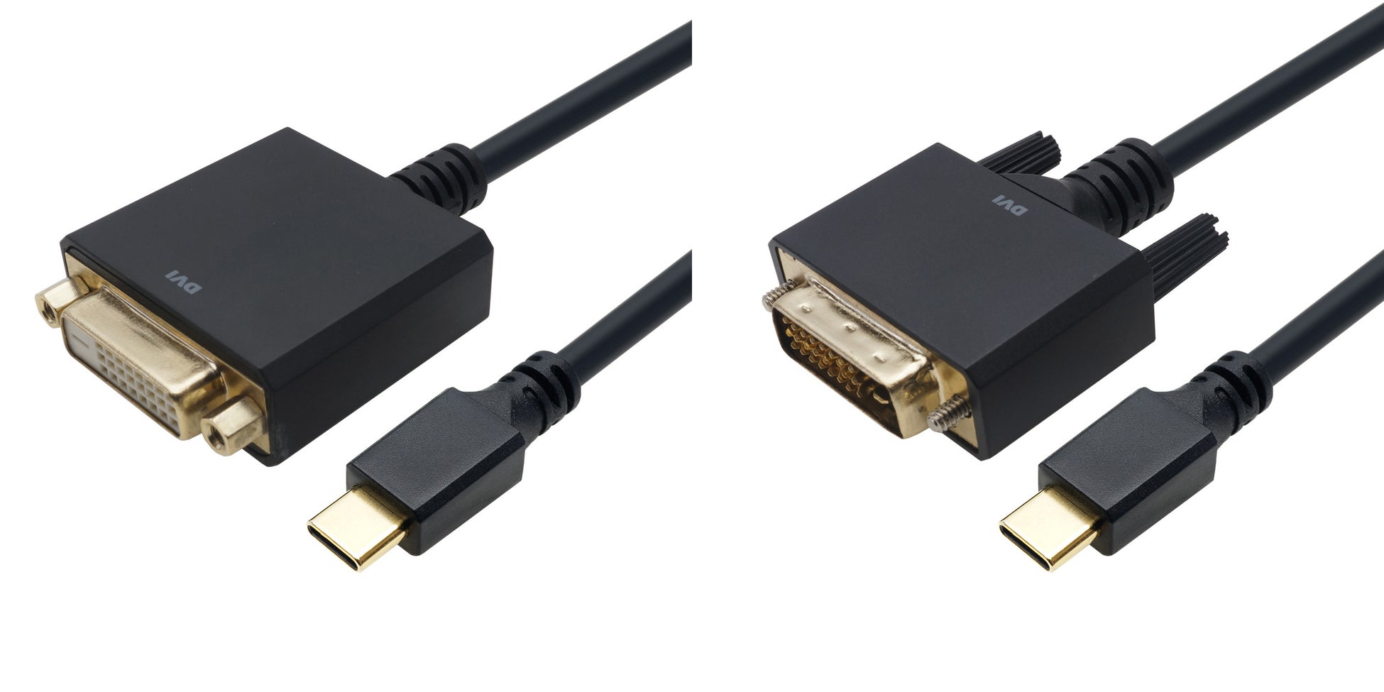 USB Type-C(オス)→DVI(メス)変換アダプタ 15cm