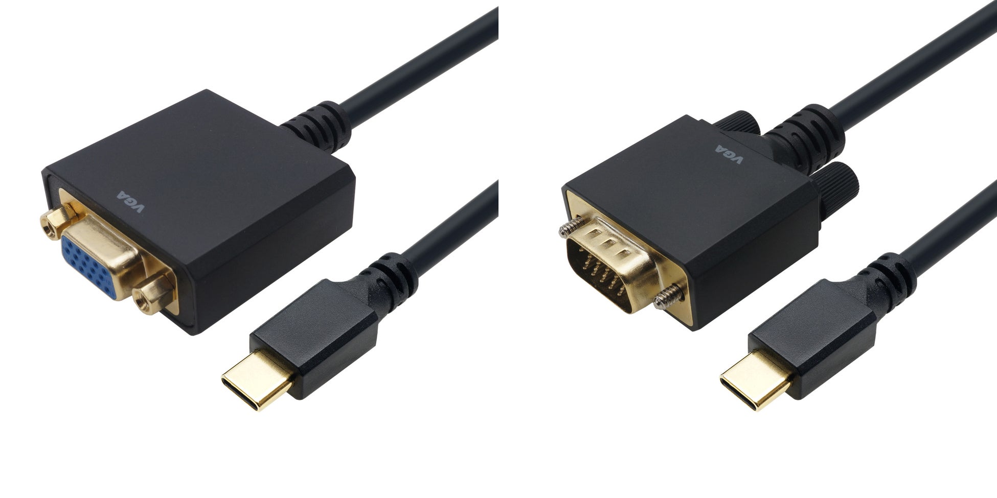 USB Type-C(オス)→VGA(メス)変換アダプタ 15cm