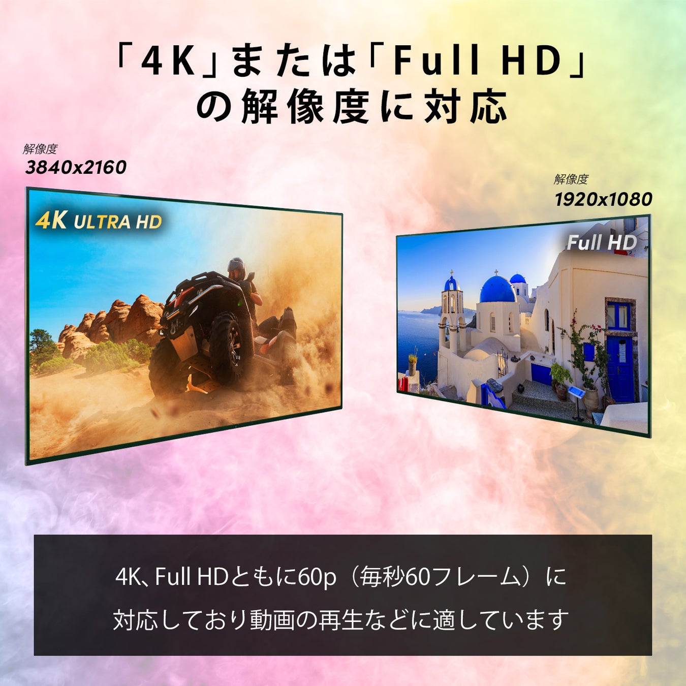 HDMI、DisplayPort変換は4K/60p、DVI,VGA変換は1920x1080/60pまでの解像度にそれぞれ対応しています。