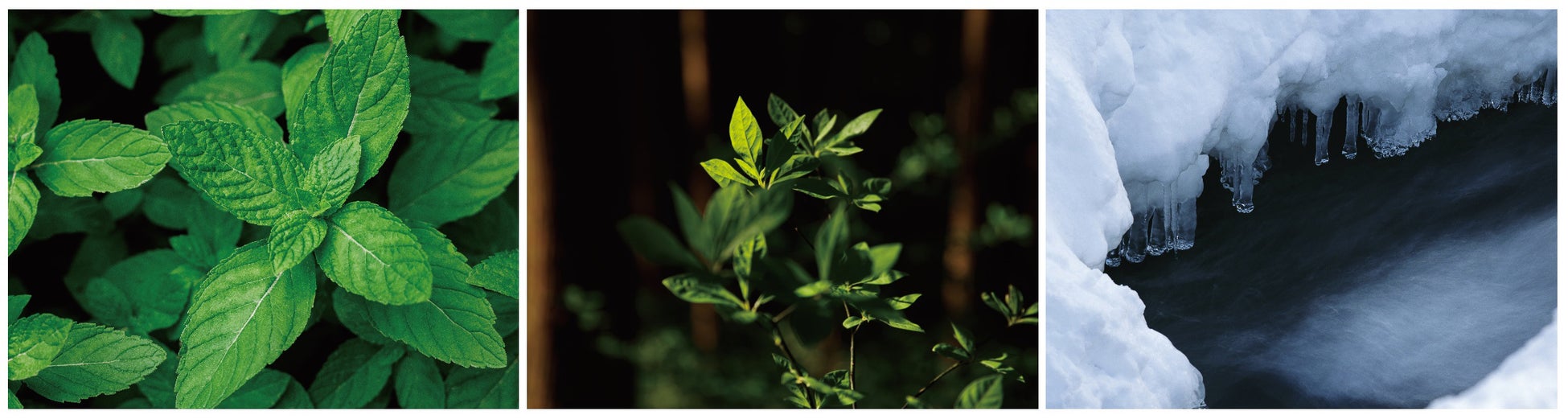 香りの基調となるクロモジ精油(※1)を使用。このクロモジ(※1)の香りをベースに和種ハッカ(ミント)(※2)のフレッシュな香り、ヒノキやスギなどの樹木系の神秘的な香り、ゆず(※5)の爽やかな香りをプラス。鮮烈で清々しい香りは、暑さによる不快感のリフレッシュ効果も期待できます。