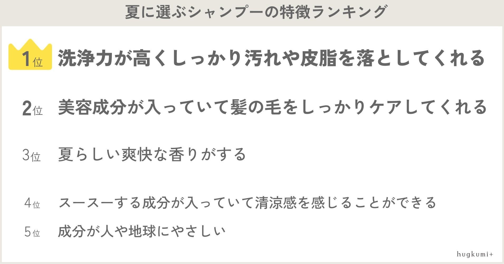 - 夏、シャンプーに求めること第1位は「洗浄力が高くしっかり汚れや皮脂を落としてくれる」