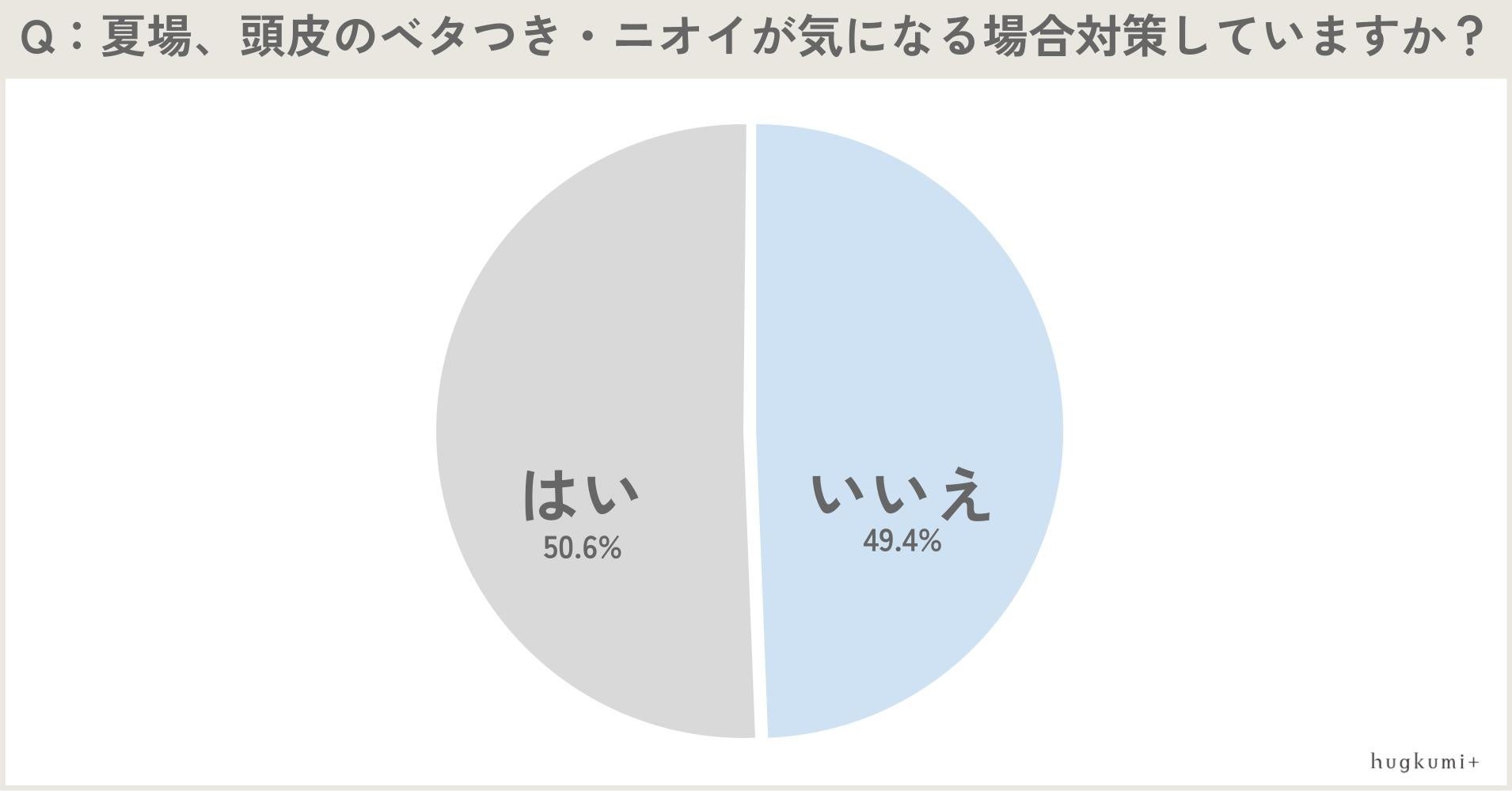 一方、「はい(49.7%)」と答えた方の、頭皮のべたつきやニオイに対する対策の具体例をご紹介します。