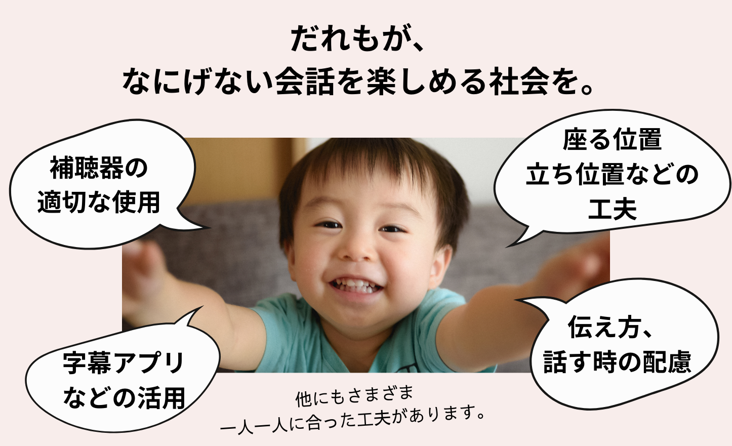 補聴器だけでなく、テレビの字幕の利用・音声字幕化アプリの使用・話しかけ方の工夫など、さまざまなツールや配慮によって、だれとでも、なにげない会話を楽しめるはずだと思います。