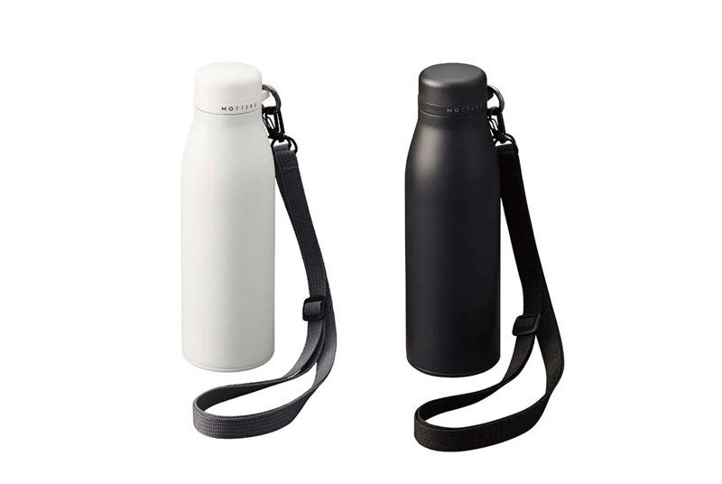 斜め掛け可能なショルダー付きボトル。保冷保温ができるサーモステンレスボトル