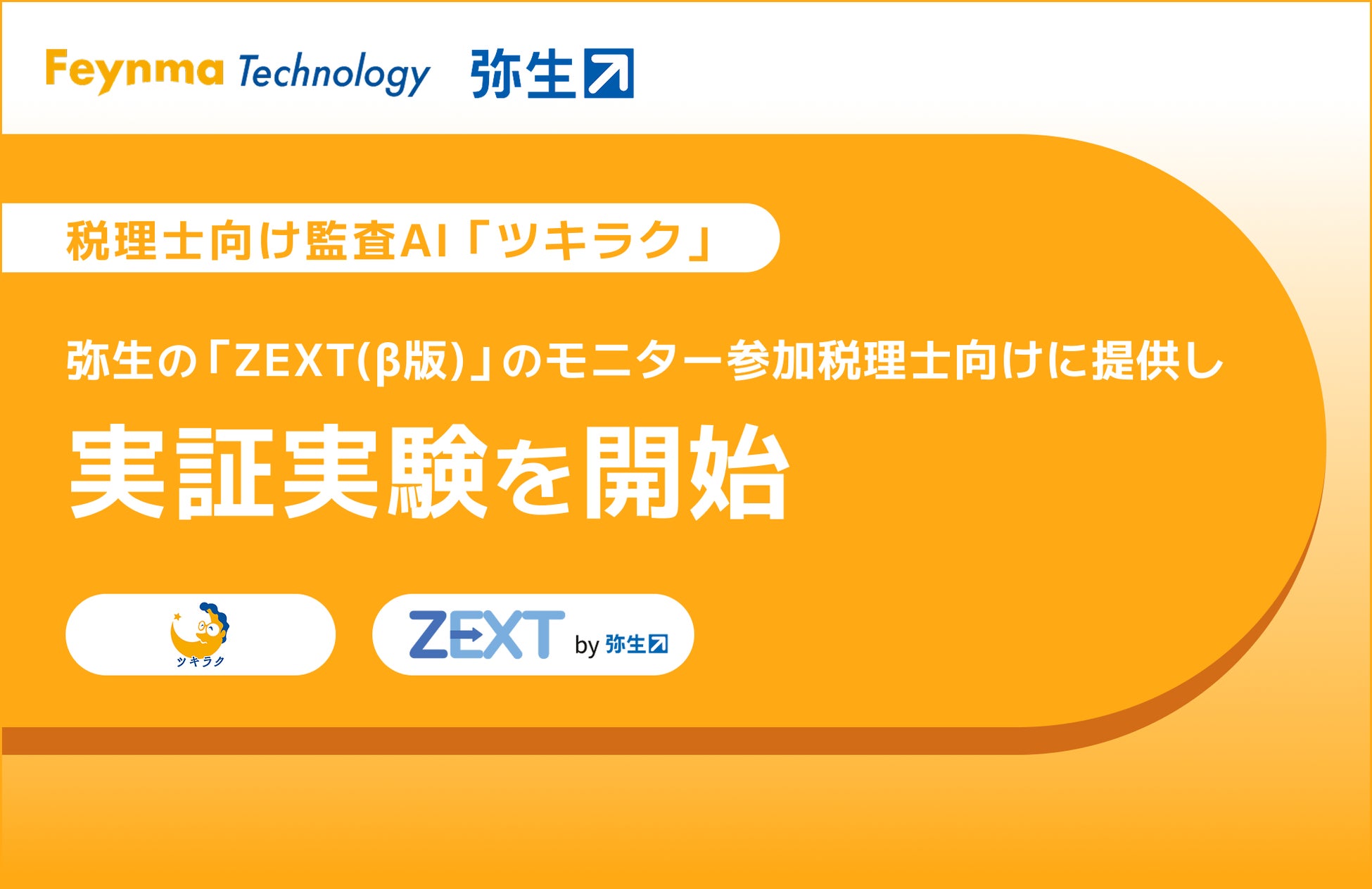 株式会社Feynma Technology(本社:名古屋市東区、代表取締役:土屋太助)は、弥生株式会社(本社:東京都千代田区、代表取締役 社長執行役員 兼 CEO:武藤健一郎、以下「弥生」)の「ZEXT(β版)」のモニター参加する税理士向けに当社の税理士業務効率化を目的とした監査AIサービス 「ツキラク」を提供し、税理士事務所が抱える業務効率化や顧問先との連携強化といった課題解決のため、段階的に実証実験を開始することをお知らせいたします。