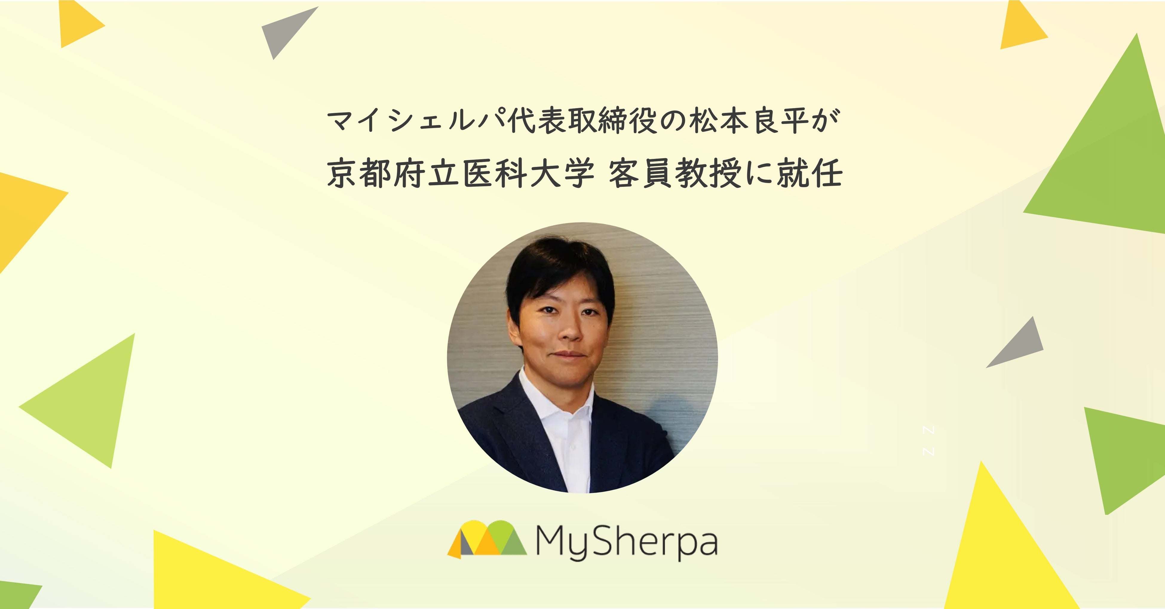 メンタルヘルスケア支援サービス「マイシェルパ」を提供する株式会社マイシェルパ(以下、当社)は、当社代表取締役である松本良平が2024年10月1日付で京都府立医科大学の客員教授に就任したことをお知らせします。松本は、医学部生・大学院生向けの特別講義や共同研究等を担当し、医師、医学研究者、精神科専門医の育成に貢献してまいります。